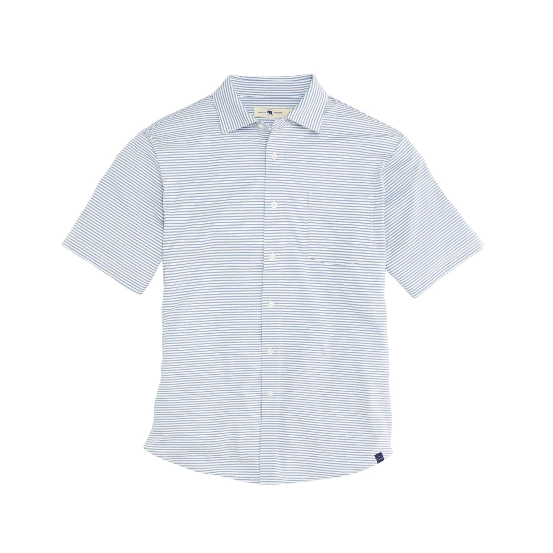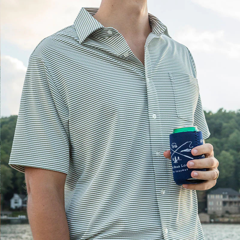 Introducing our versatile, button-down, not your father's seersucker shirt. Made with performance material, this button-down has a four-way stretch and is silky smooth. It is perfect to wear with swim trunks or for vacation. It is the ideal in-between shirt when you don't want to wear a button-down or polo, you will be the best dressed on the beach!