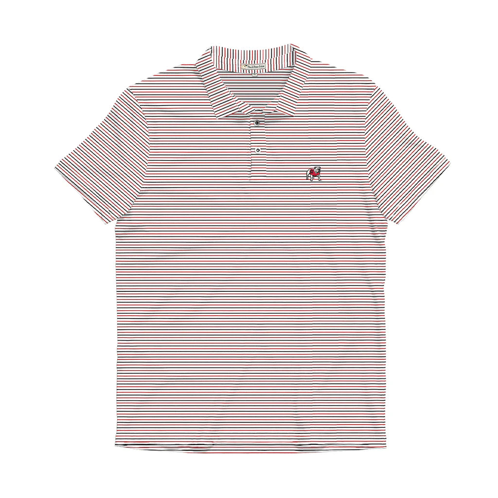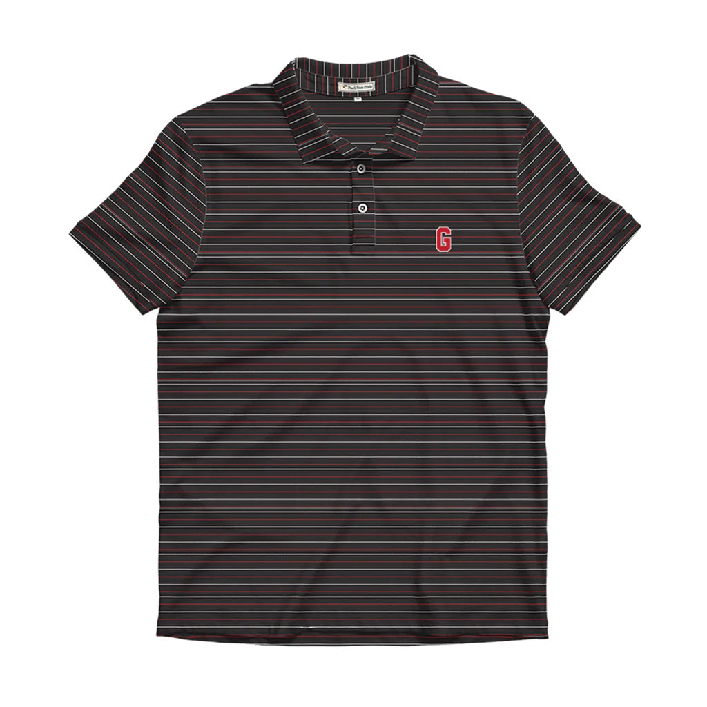 The Peach State Pride Red, White & Black Stripe Polo. Perfect for UGA football game days!