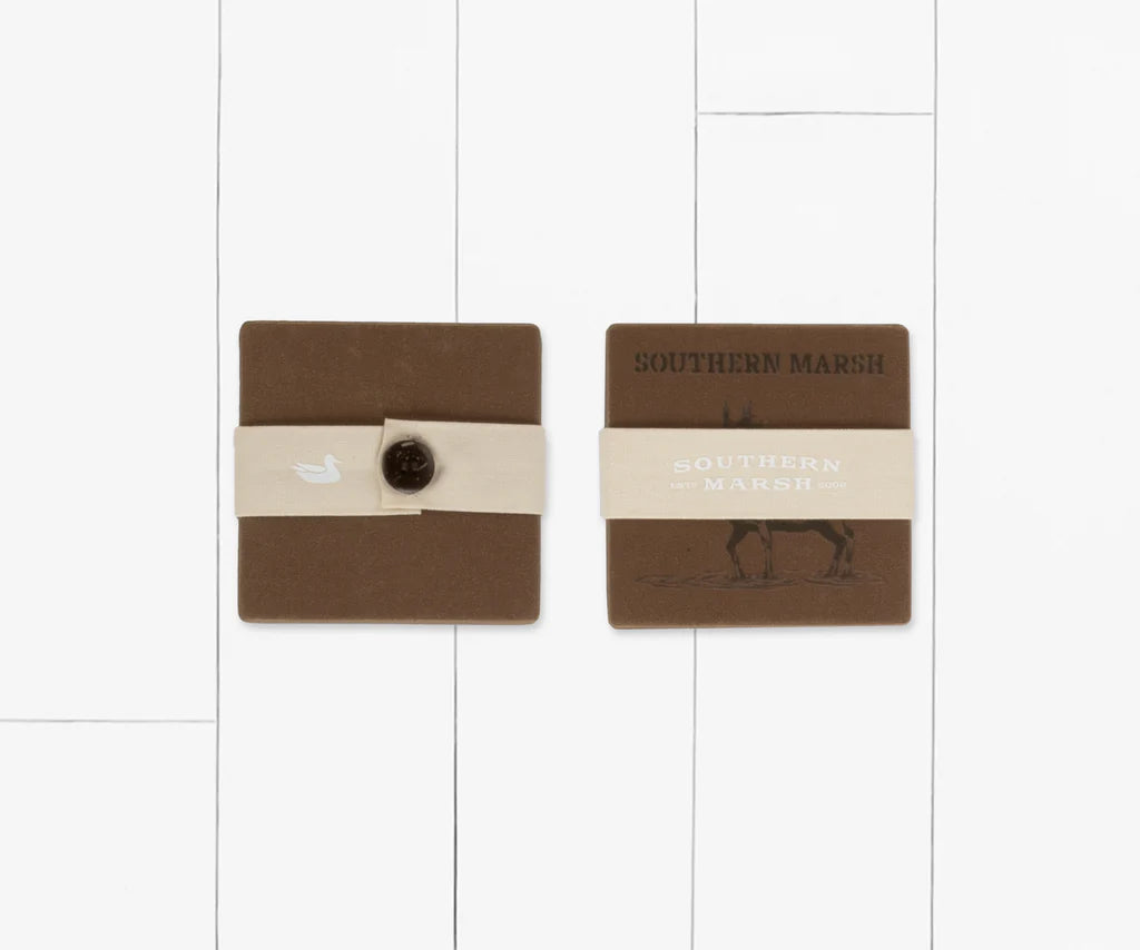 Protect your table tops from stains with our new Waxed Canvas Coaster set. These waxed canvas coasters feature 4 custom southern marsh prints to bring style and function to any household.