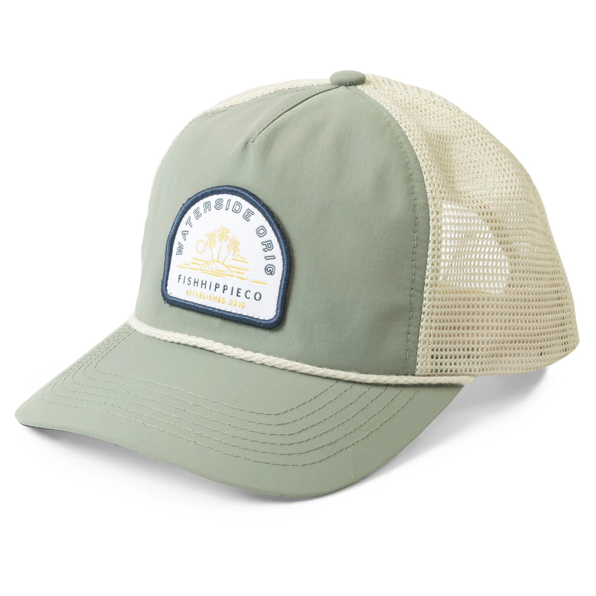 A performance trucker style with mesh back, adjustable closure, and made of moisture-wicking material.