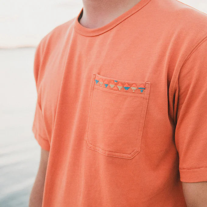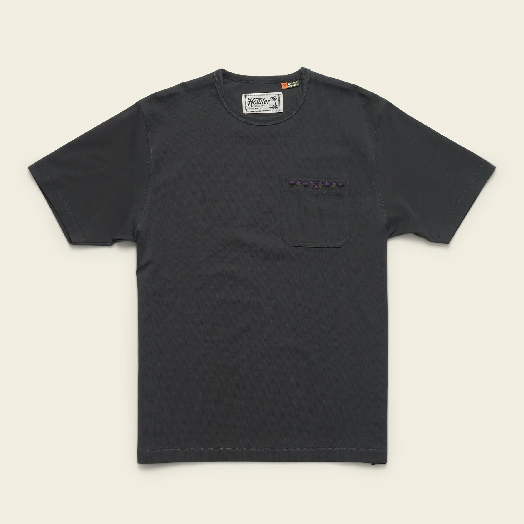 A new edition to our lineup of t-shirts, the Spectrum Pocket T is our solid color, heavyweight cotton jersey option inspired by classic cotton Ts of the 80’s and 90’s. Featuring a ribbed collar and a kaleidoscope of inventive Howler Brothers front pocket embroidery.