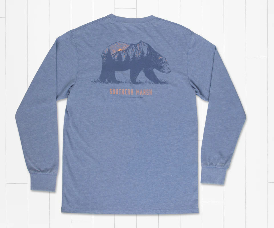 Representing the beauty found in all types of nature, from cascading mountains to roaming bears, this tee is the perfect addition to any nature-lover's wardrobe! Made with our specially treated fabric, it’s been heavy-garment washed for softness and comfort. The material is meant to fade over time to make it look like it has been your favorite tee, season after season. The breathable, lightweight SEAWASH™ fabric makes it airy and comfortable, and it’s finished with a front pocket featuring our Southern Marsh mallard silhouette logo.