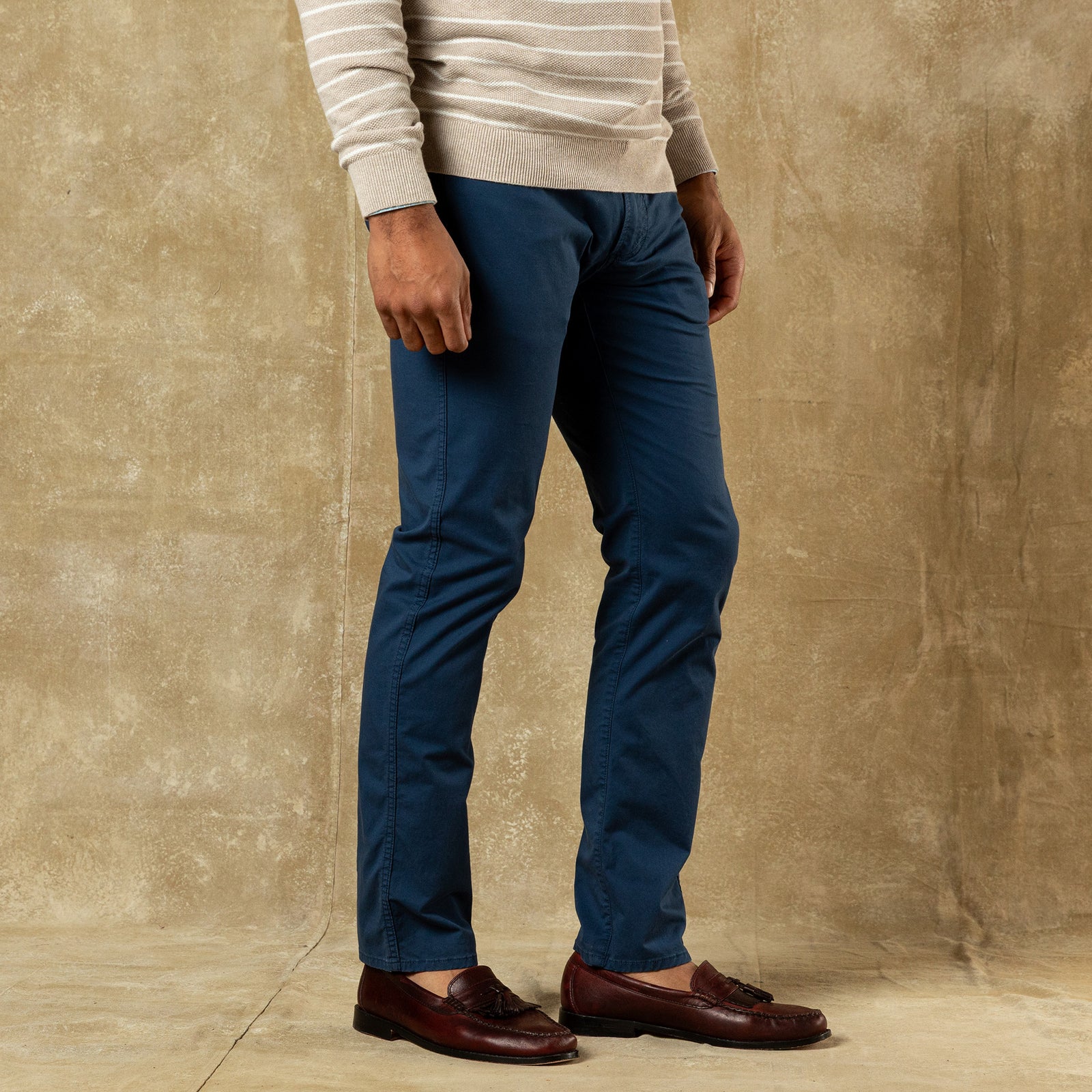 The Shoreline’s buttery lightweight twill offers an elevated take on our best-selling five-pockets. This warm-weather fabric weight with a hint of stretch isn't just for weekends and casual Fridays. Easily dress up the Shoreline with a sport shirt and sport coat for a more professional environment. Their classic fit mirrors the Gold School Chino and wears perfectly with a boat shoe or loafer.
