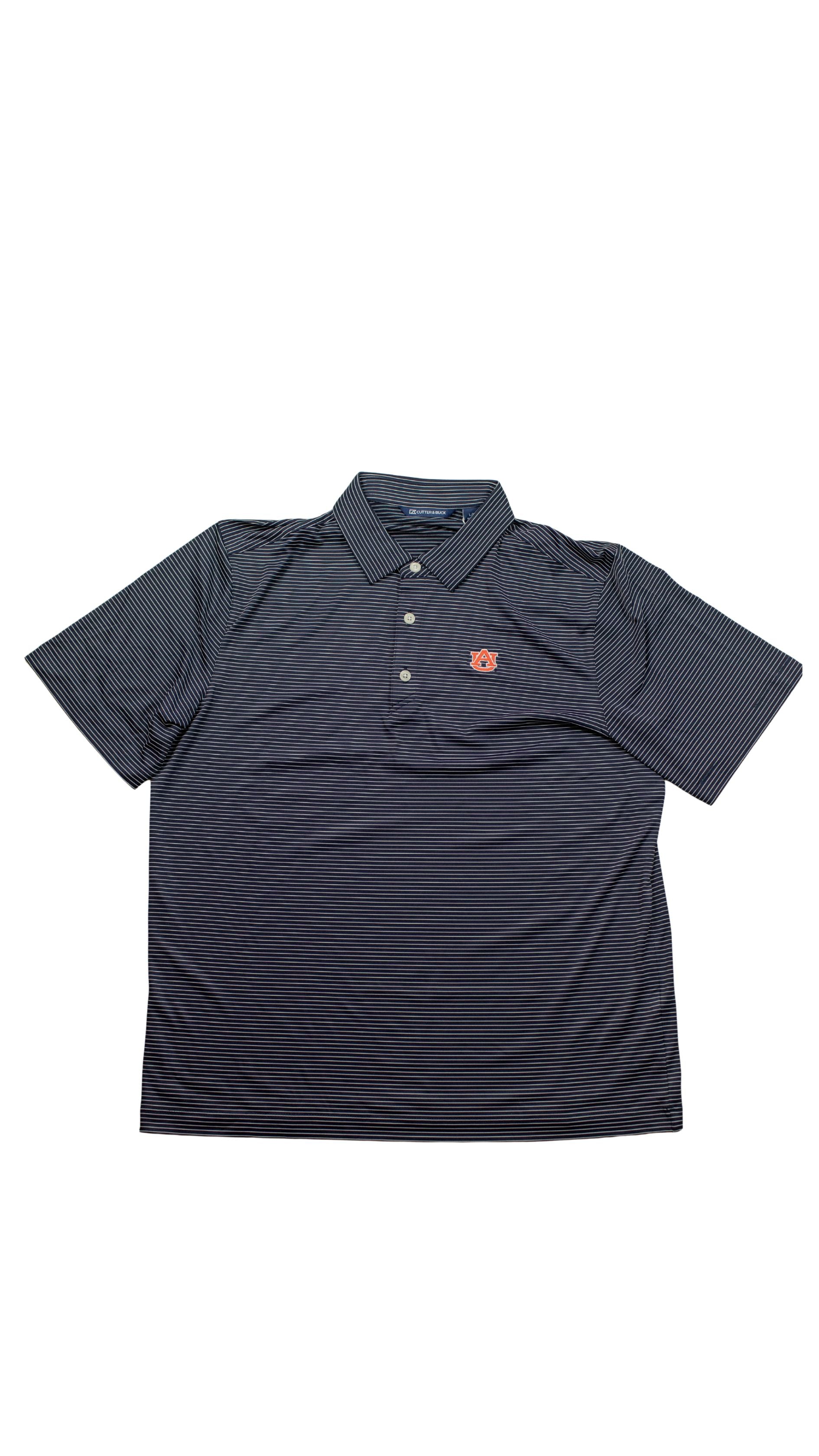Auburn Tigers Forge Eco Fine Line Stripe Stretch Recycled Mens Polo - Auburn Logo