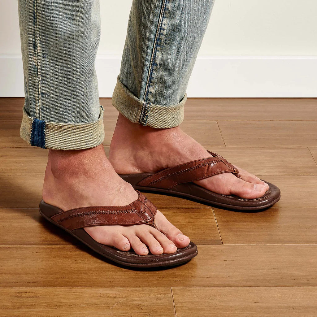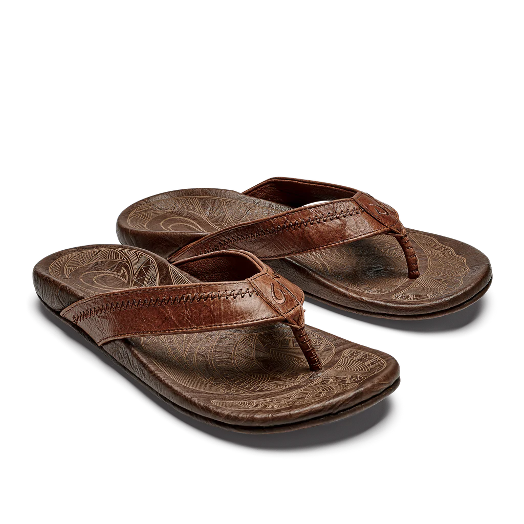 - What makes an OluKai sandal truly built to last? We like to think it’s a few things: tradition, craftsmanship, and attention to detail. The Hiapo is constructed with naturally tumbled or marbled full-grain leather using hand-sewn traditional whipstitching, complete with Polynesian tattoo artwork details on the footbed. One of our original sandals (hence, its namesake), Hiapo only gets better with age. Made for the beach, not the ocean—prolonged contact with water may cause damage.
