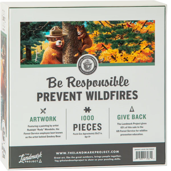 All Smokey Bear products created by The Landmark Project are licensed through the US Forest Service, and 10% of the proceeds go toward wildfire prevention education.