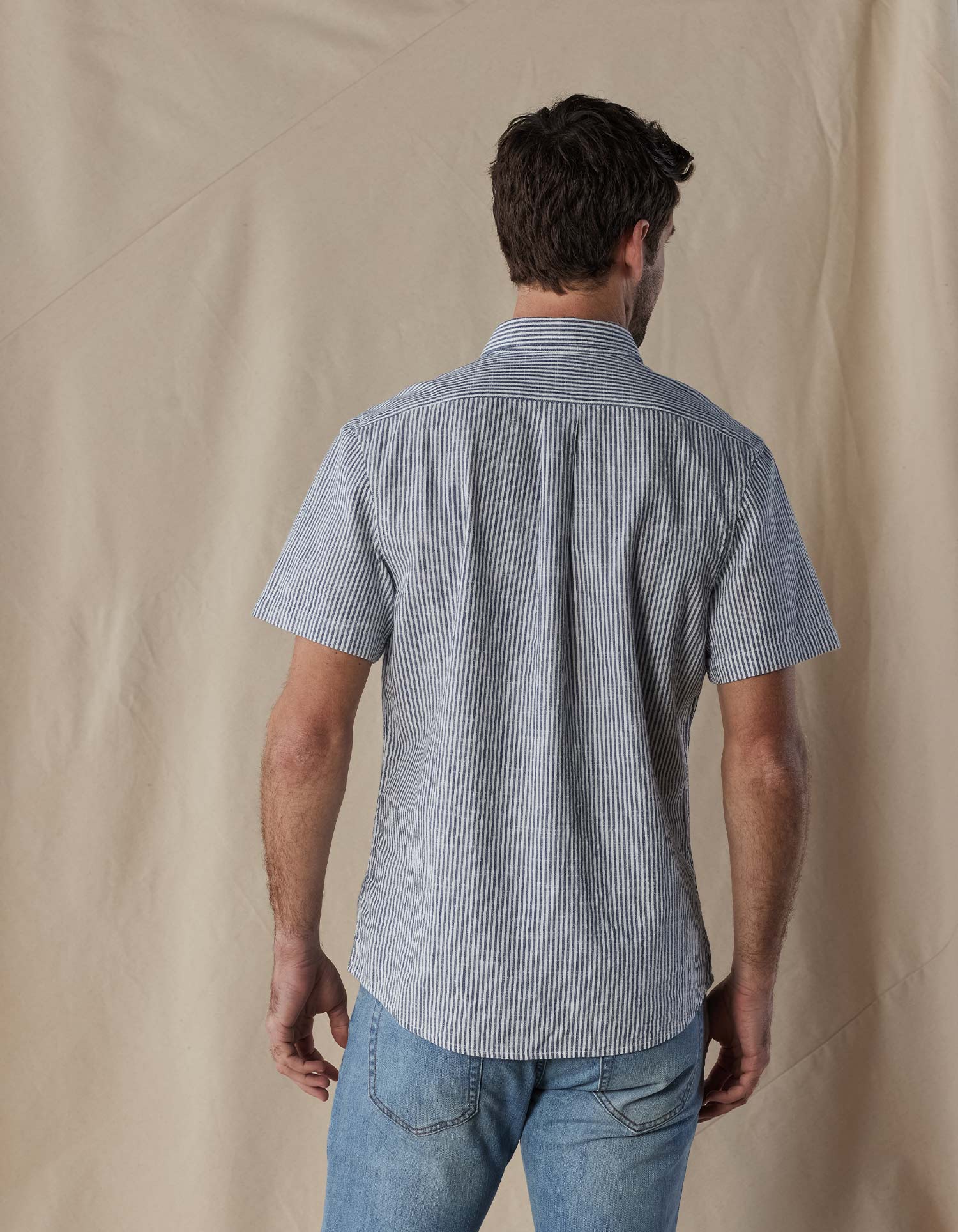 Washed down and softened for a lived-in feel right from the start. Cross-hatched yarn-dyed 100% woven Cotton with a subtle slub texture.