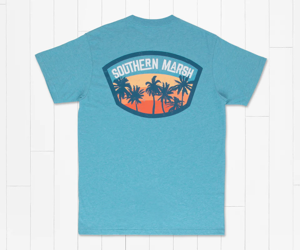 The best way to spend a summer night is watching the sunset slowly fall below the coastline. Done in warm red and orange tones, the design of the Fading Fast Tee captures the beauty of those relaxing evenings spent by the shore. The swaying palm trees will remind you of your favorite vacation spot, while the ultra-soft cotton fabric will keep you comfortable all day long. Finished with a printed neck tag and our signature mallard silhouette logo on the front pocket.