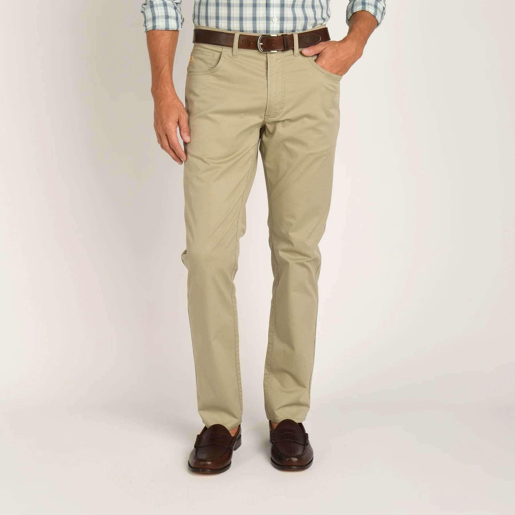- The Shoreline’s buttery lightweight twill offers an elevated take on our best-selling five-pockets. This warm-weather fabric weight with a hint of stretch isn't just for weekends and casual Fridays. Easily dress up the Shoreline with a sport shirt and sport coat for a more professional environment. Their classic fit mirrors the Gold School Chino and wears perfectly with a boat shoe or loafer.