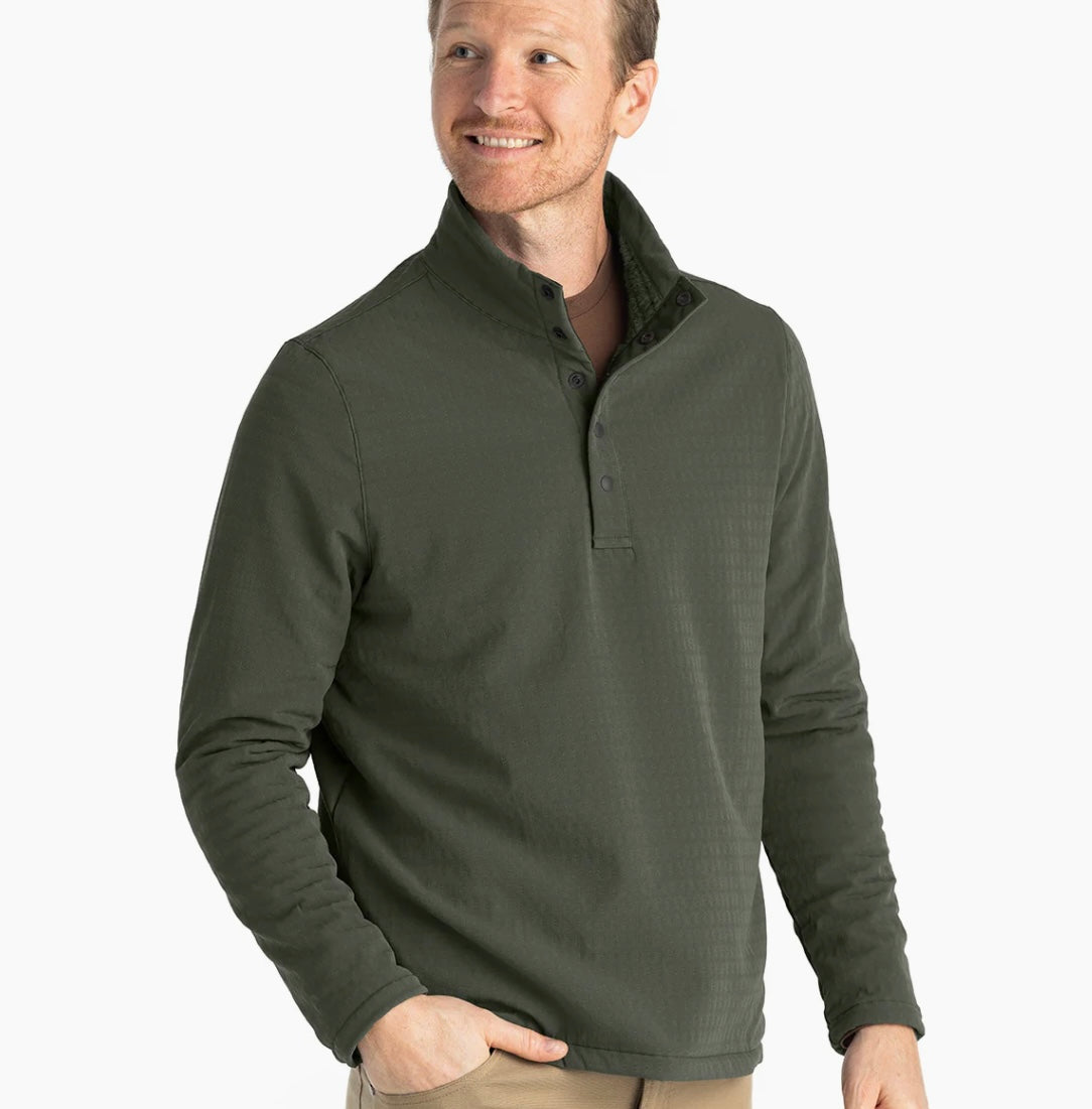 One of the most coveted styles around Free Fly HQ, the Gridback Fleece Snap Pullover is an absolute winner—an innovative combo of classic fleece comfort and streamlined weather-resistance. Our product team worked their fabric sorcery and outfitted the interior with an indulgently soft, high-pile fleece that traps and retains heat throughout gridded channels. They finished it with a bonded, stretch-weave shell that keeps out rain and wind unlike any other fleece. Wear it as an outer layer on brisk hikes or early morning boat rides, or pair it with our Stretch Canvas Pant for your next beer garden visit.