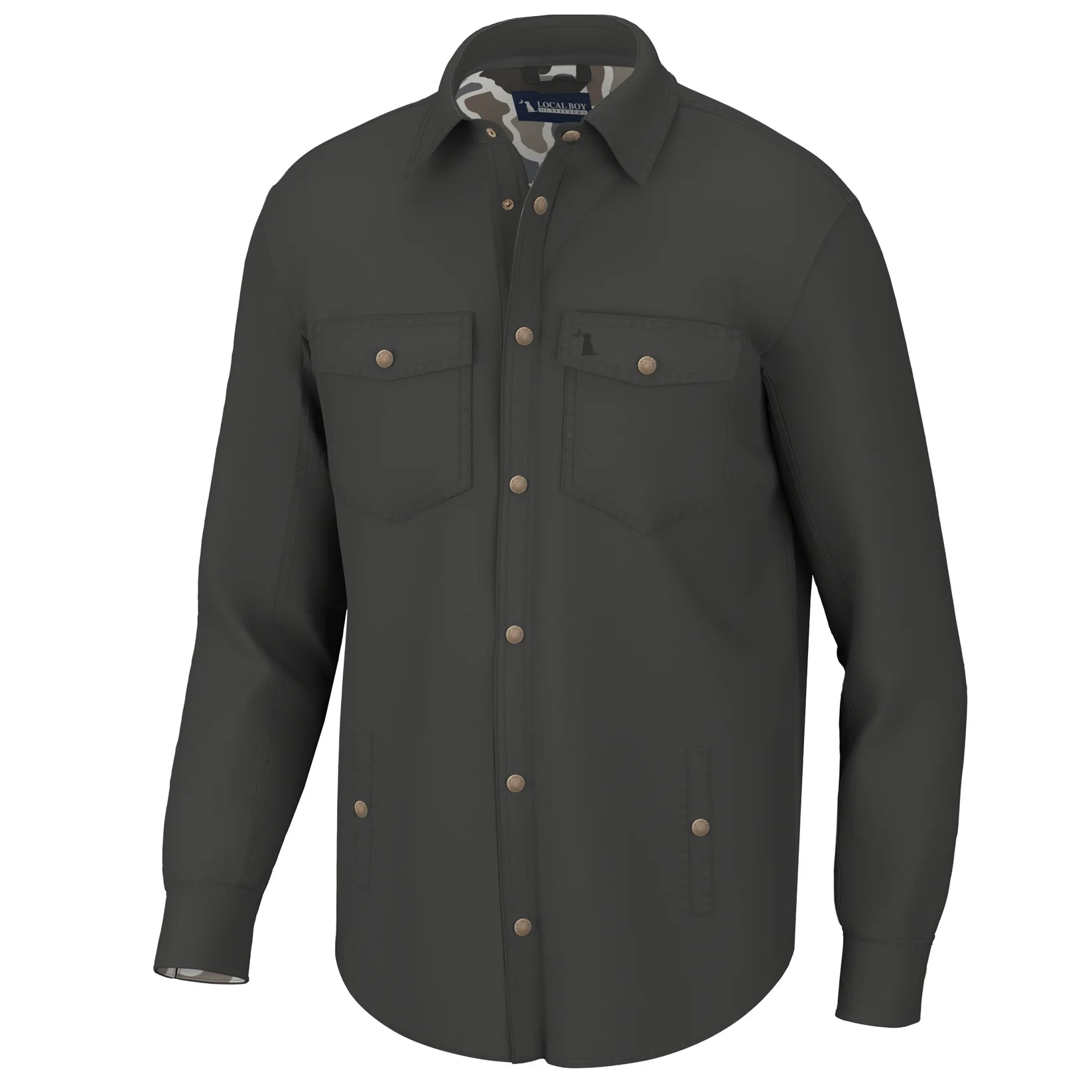 Is it a shirt or a jacket? While there's room for debate, one thing is for certain: this thing is as sharp as a tack. Cut in a traditional fit with a curved bottom hem for added mobility, this mid-weight superstar is our take on the traditional chore jacket. Featuring logo snaps at the placket and "snap-flap" upper exterior pockets, we accented these slick tricks with contrasting designs on the interior of the lower hand pockets and collar. Double stitched throughout for durability and finished off with stacked buttons at the cuff and a leather LBO logo patch at the back, this versatile do-all is sure to add some smooth to your groove.